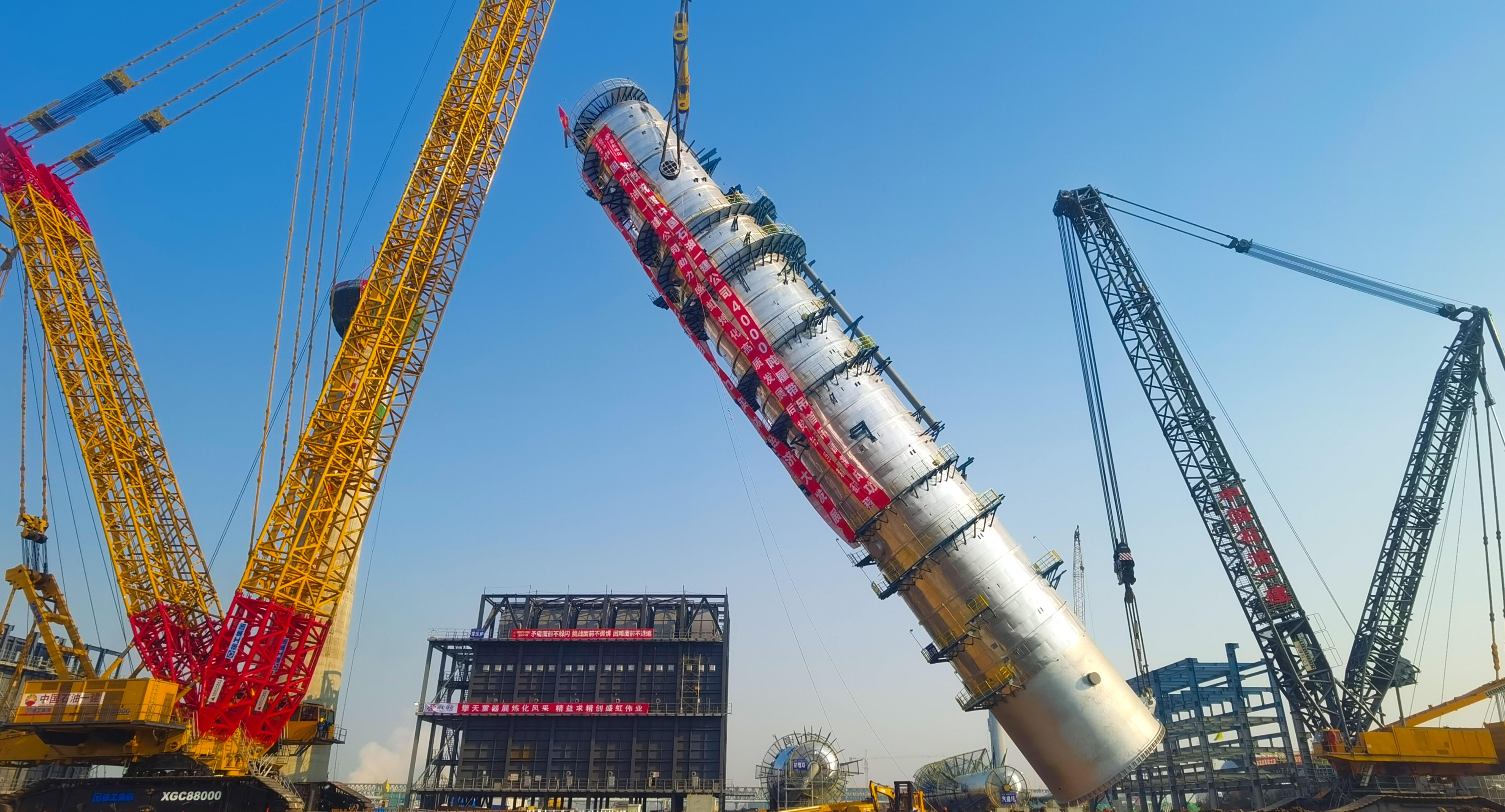 國內最大常壓塔吊裝成功 17.c18起草视频煉化核心設備安(ān)裝正式啟動