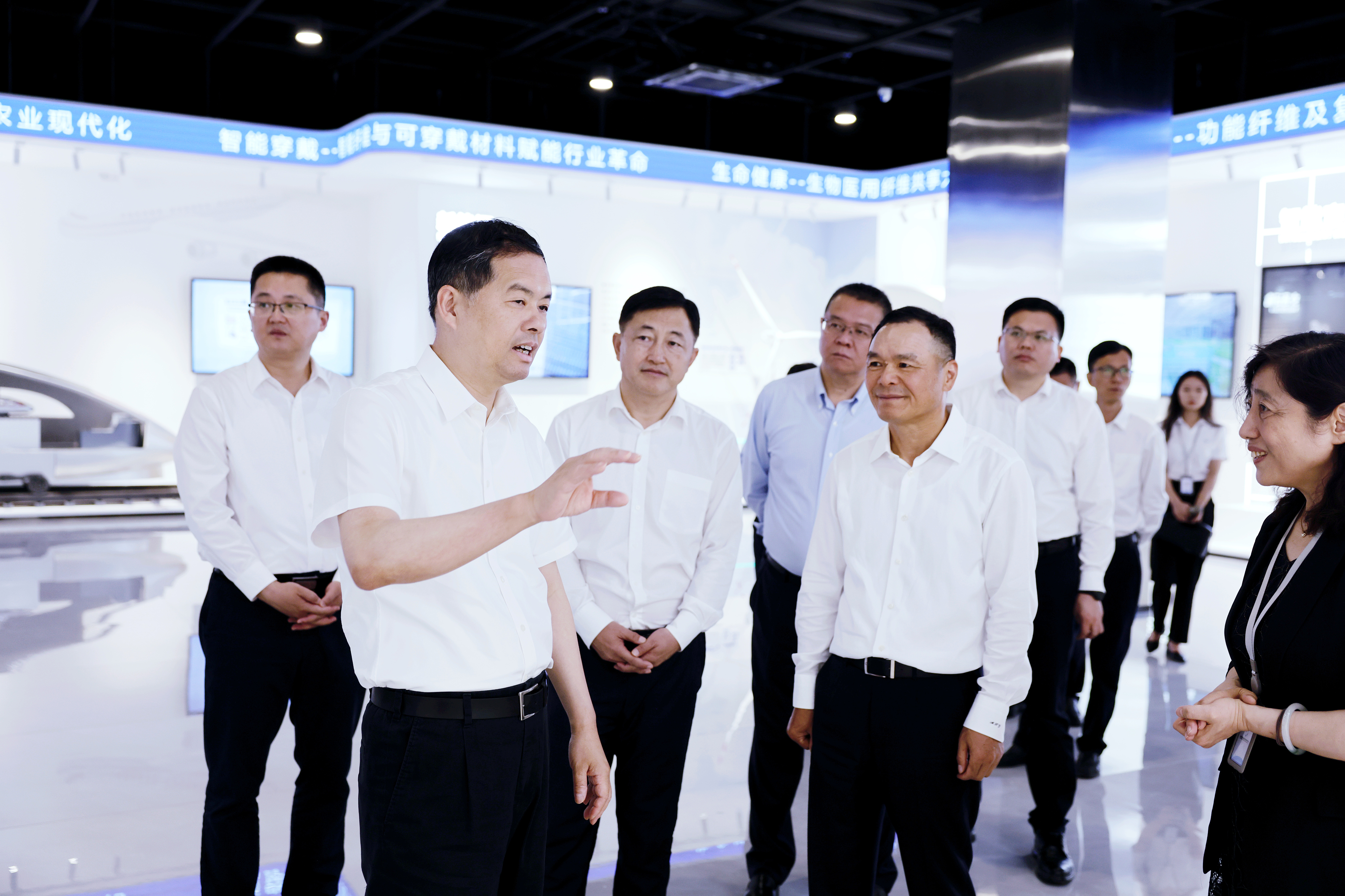 7月12日,江蘇省委常委、蘇州市(shì)委(wěi)書記(jì)劉小濤到17.c18起草视频國家(jiā)先(xiān)進功能纖維創新中(zhōng)心(xīn)開展新質生產力調(diào)研,盛(shèng)虹控股集團黨(dǎng)委書記、董事長繆漢根陪同。